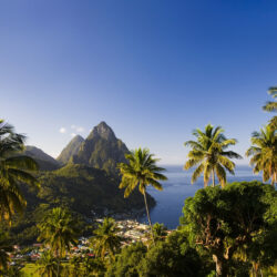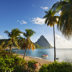 The main resort area of Saint Lucia is in the north-west of the island, around Rodney Bay and Cap Estate, 90 minutes from the international airport which is located on the south coast. Here you will see the greatest development of hotels and villas and a good selection of restaurants, shopping malls and some quite lively bars. Probably the best golden sand beaches, particularly Reduit at Rodney Bay which is long and expansive but can get busy, especially when cruise ships visit. The transfer from the international airport is scenic as you initially travel along the wilder Atlantic coast before crossing through banana plantations and dense forest before emerging onto the Caribbean (west) coast.