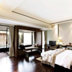 59 suites. You have a choice of Sky Pool suites which are a rather generous 80 sq.m with integrated living space, larger Deluxe Sky Pool suites, Garden Pool suites which are good for families with smaller children as they have a garden area (of course you do need to be aware of the pool with young children), Family Suites with two bedrooms, Moonlight duplex suite and the Nidhrarom Speciality suite. All are wonderfully stylish and beautifully designed.