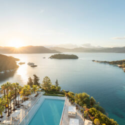 Come for the views, the easy-going elegance and a real sense of style. The fantastic resort facilities, and of course the superb selection of beaches, as well as several dining options in differing locations. The spectacularly secluded, almost tropical setting, with pine-clad hills leading down to the soft sand – imported from Egypt annually – beaches and clear turquoise sea.