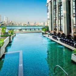 Several restaurants and bars Outdoor swimming pool from May to October – generally closed during the cooler months of November to April approx. when a pool becomes less important. The bar on the top floor is the place to enjoy the nightly light show of the skyline.