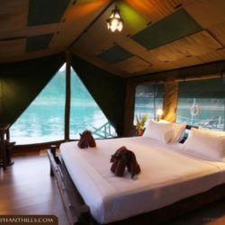 Further into the jungle, you have the Unique Rainforest Floating Camp, just 20 tents positioned on the very edge of Cheow Lam Lake (See the main image above). The journey between the 2 camps is an experience in itself, with the last hour completed by a longtail boat. Each tent has a shower and toilet. There is a restaurant within the camp.