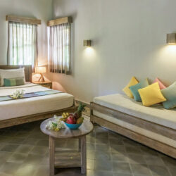 There are Superior Garden Bungalows, Deluxe Garden Bungalows, Deluxe Beachfront Bungalows.