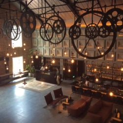 In 2017 it was opened as a hotel. Beautifully renovated yet retaining much of the history and sense of time. Particularly evident in the sleek spacious lobby, where you have machinery inspired lighting dangling from black iron beams.