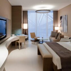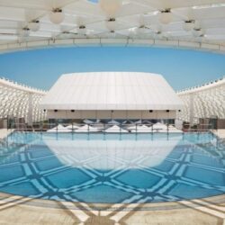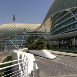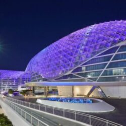 Yas Hotel a luxurious, 5-star futuristic property with a unique “honeycomb“ exterior. The impressive Formula One Grand Prix race track literally circles the hotel.