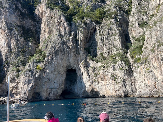 We had time to take a boat trip around Capri, just over an hour and enjoyable. Dramatic little grotto caves around the coast; we could not visit the famous Blue Grotto as the sea was too choppy, but we did see the green and white versions.