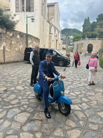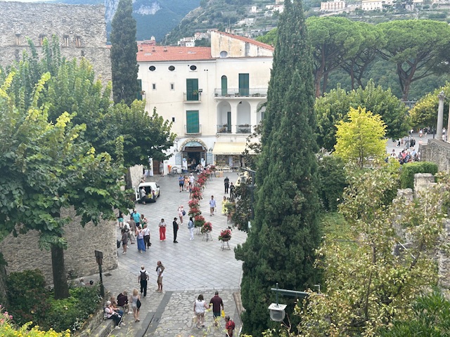 We visited Ravello for the afternoon. It is only a 20-minute drive in and up, but you need to anticipate that you might not get on the first bus – they operate every 30 minutes. Or you can take a taxi – talking to others in the line helps to share the cost and saves time.