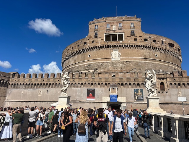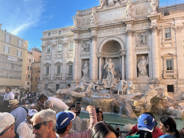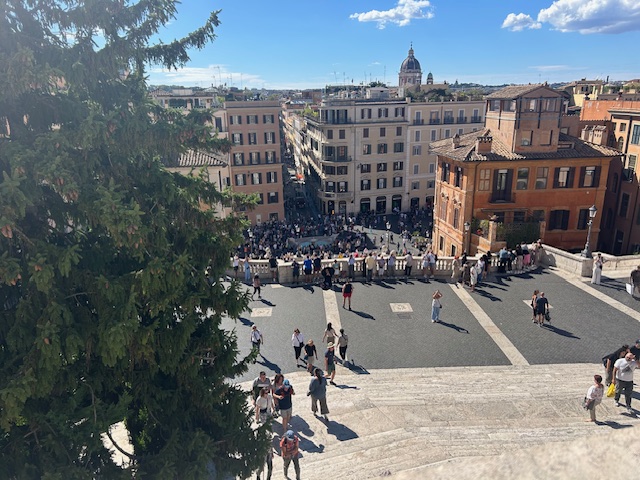 We first flew to Rome, just over 2 hours from Heathrow. We were greeted by a bright sunny day, and this continued over the next 8 days, with one cloudy morning as the exception. We stayed at The Inn on the Spanish Steps, brilliantly located. I spent quite a bit of time in Rome in my student days, so way back in time, but I can still get lost and end up in roughly the right place. It was so busy, with lots of people from all corners of the world. This year is even busier than normal with the Catholic Jubilee celebration – once every 25 years.