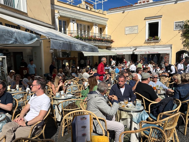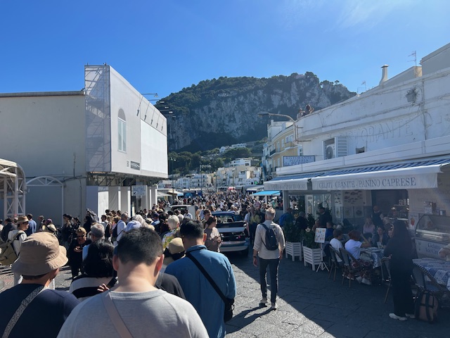 We made a day trip to Capri. It only takes 20 minutes by ferry. My first impression of Capri was not good – I have mentioned the crowds of people several times, but this took it to another level. Maybe one of the worst examples of over-tourism I have encountered. Long lines everywhere, causing confusion.